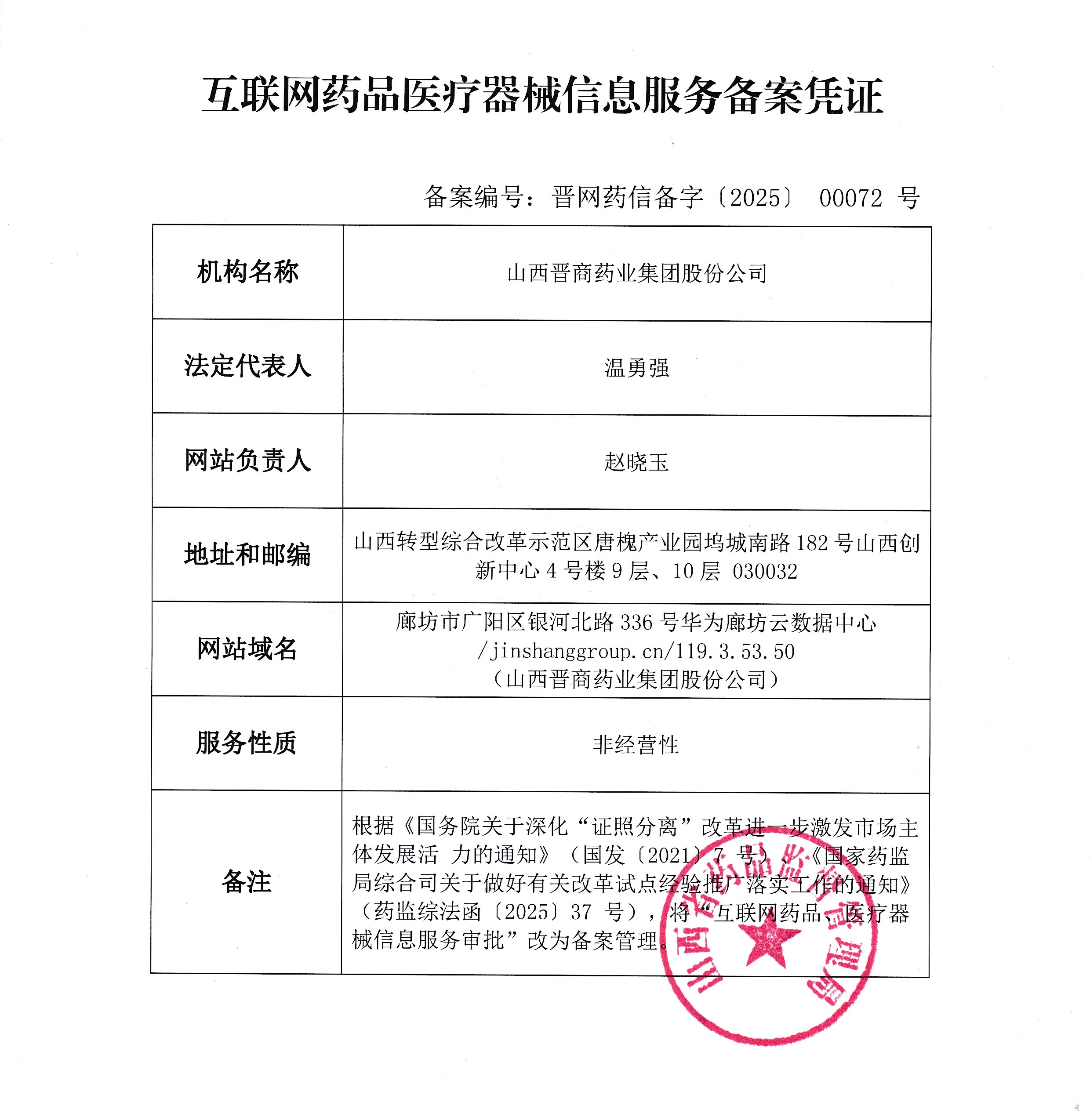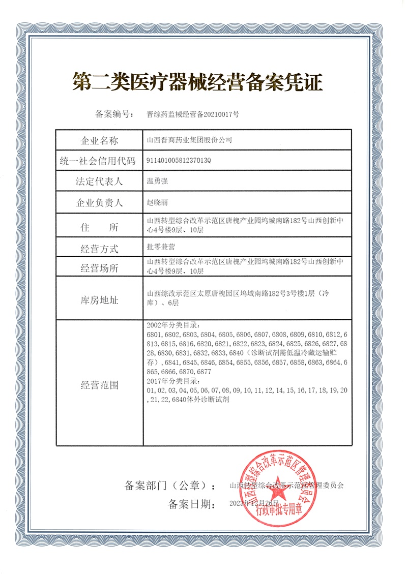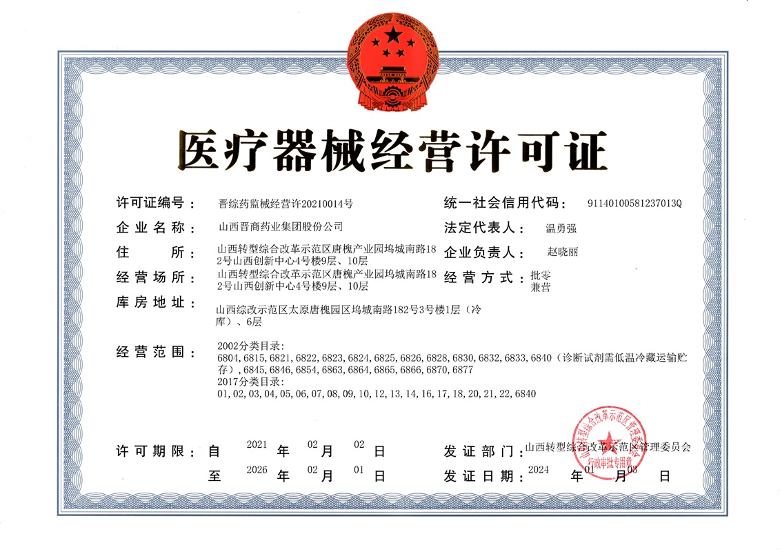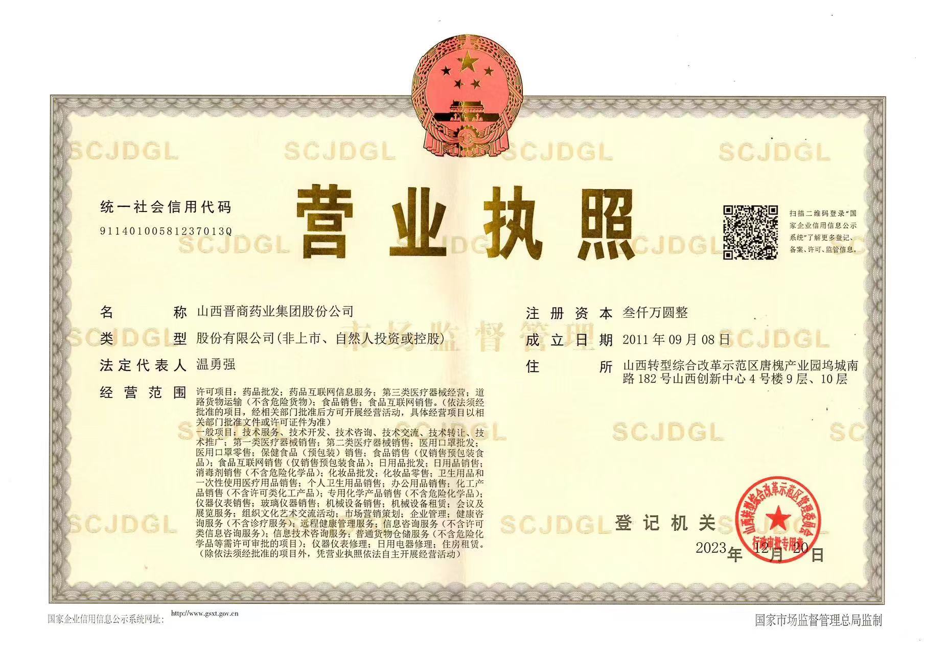 晋商药业在2017年通过产业整合成为我省首家由民营药企联合组建的、唯一的具备药品经营资质的集团化运营的平台公司。集团及其分子公司经营范围宽泛,资质手续齐全,主营业务有药品、医疗器械、医疗信息化、灸疗学科建设、医生集团服务等,业务遍布全省,覆盖医药及大健康各个领域,且有着领先的经营业绩和市场占有率。